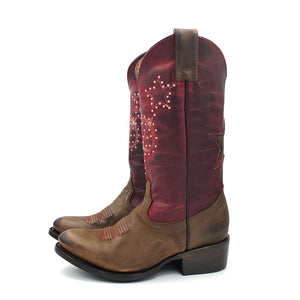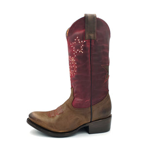 6310 BOTA VAQUERA LADY OV VAQUERO TAUPE/ROJO